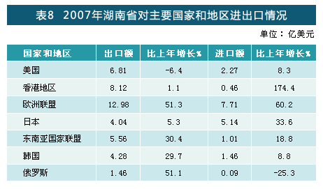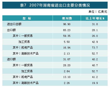 進(jìn)出口總額繼續增長(cháng)。全省進(jìn)出口總額96.90億美元,比上年增長(cháng)31.8%。其中,出口65.23億美元,增長(cháng)28.1%;進(jìn)口31.67億美元,增長(cháng)40.2%。一般貿易進(jìn)出口87.55億美元,增長(cháng)30.4%;加工貿易進(jìn)出口8.14億美元,增長(cháng)46.0%。私營(yíng)企業(yè)進(jìn)出口35.90億美元,比上年增長(cháng)81.1%,加快28.3個(gè)百分點(diǎn)。機電產(chǎn)品出口16.94億美元,比上年增長(cháng)73.7%,加快43.3個(gè)百分點(diǎn);高新技術(shù)產(chǎn)品出口2.13億美元,增長(cháng)52.7%。農產(chǎn)品出口3.5億美元,增長(cháng)12.4%。其中,活豬出口0.53億美元,增長(cháng)14.7%;茶葉出口0.40億美元,增長(cháng)19.2%。