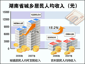 2007年,在省委、省政府的正確領(lǐng)導下,全省各級深入貫徹科學(xué)發(fā)展觀(guān),認真落實(shí)中央各項宏觀(guān)調控政策,著(zhù)力加強基礎產(chǎn)業(yè)、基礎設施和基礎工作,大力推進(jìn)新型工業(yè)化,扎實(shí)推進(jìn)社會(huì )主義新農村建設,努力構建和諧湖南,全省經(jīng)濟發(fā)展加快,質(zhì)量效益顯著(zhù)提高,發(fā)展活力進(jìn)一步增強,民生不斷改善,社會(huì )事業(yè)全面進(jìn)步,譜寫(xiě)了富民強省的嶄新篇章。