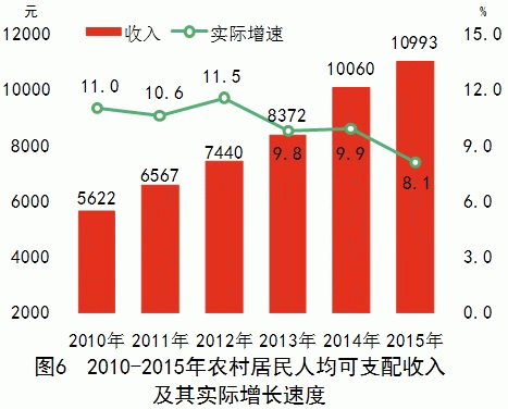 全省全體居民人均可支配收入19317元,比上年增長(cháng)9.6%,扣除價(jià)格因素實(shí)際增長(cháng)8.1%;人均可支配收入中位數16654元。城鎮居民人均可支配收入28838元,比上年增長(cháng)8.5%,扣除價(jià)格因素實(shí)際增長(cháng)6.9%;城鎮居民人均可支配收入中位數27216元。農村居民人均可支配收入10993元,增長(cháng)9.3%,扣除價(jià)格因素實(shí)際增長(cháng)8.1%;農村居民人均可支配收入中位數10032元。分區域看,長(cháng)株潭地區居民人均可支配收入30655元,增長(cháng)8.4%;湘南地區18070元,增長(cháng)9.2%;大湘西地區12877元,增長(cháng)10.2%;洞庭湖地區17603元,增長(cháng)9.6%。城鄉居民收入比由上年的2.64:1縮小為2.62:1。