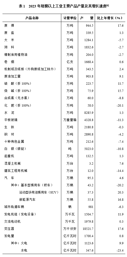 [6]2022年部分產(chǎn)品產(chǎn)量數據進(jìn)行了核實(shí)調整,2023年產(chǎn)量增速按可比口徑計算。