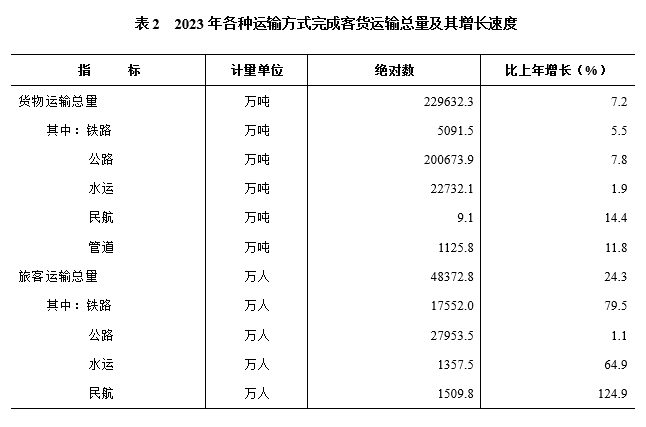全年客貨運輸換算周轉量4058.4億噸公里,比上年增長(cháng)15.6%。貨物運輸周轉量3057.5億噸公里,增長(cháng)3.6%。其中,鐵路周轉量1015.4億噸公里,與上年持平;公路周轉量1574.4億噸公里,增長(cháng)7.5%。旅客運輸周轉量1345.6億人公里,增長(cháng)72.3%。其中,鐵路周轉量967.8億人公里,增長(cháng)79.6%;公路周轉量172.5億人公里,增長(cháng)17.7%;民航周轉量203.3億人公里,增長(cháng)116.5%。