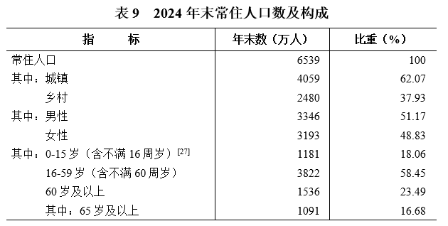 [27]2024年末,全省0-14歲(含不滿(mǎn)15周歲)人口為1084萬(wàn)人,15-59歲(含不滿(mǎn)60周歲)人口為3919萬(wàn)人。