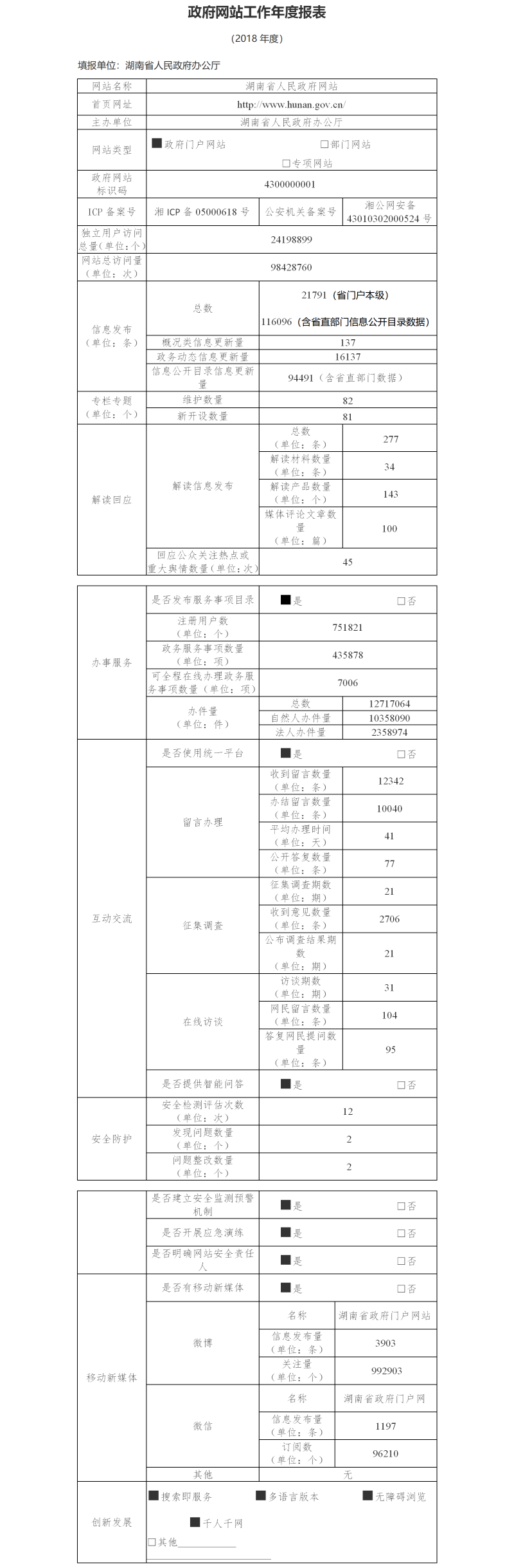 2018年湖南省政府門(mén)戶(hù)網(wǎng)站工作年度報表