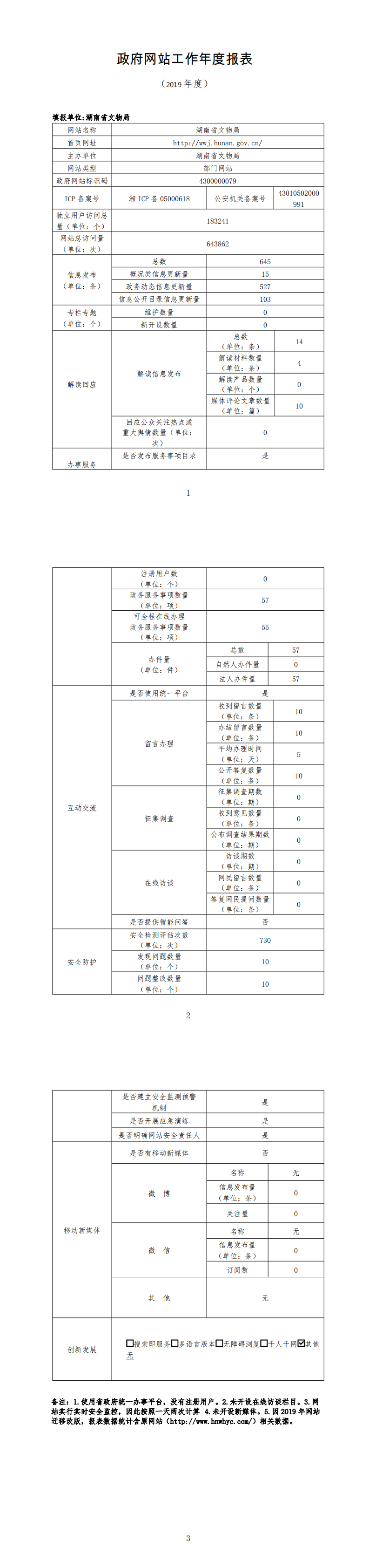 2019年湖南省文物局網(wǎng)站工作年度報表