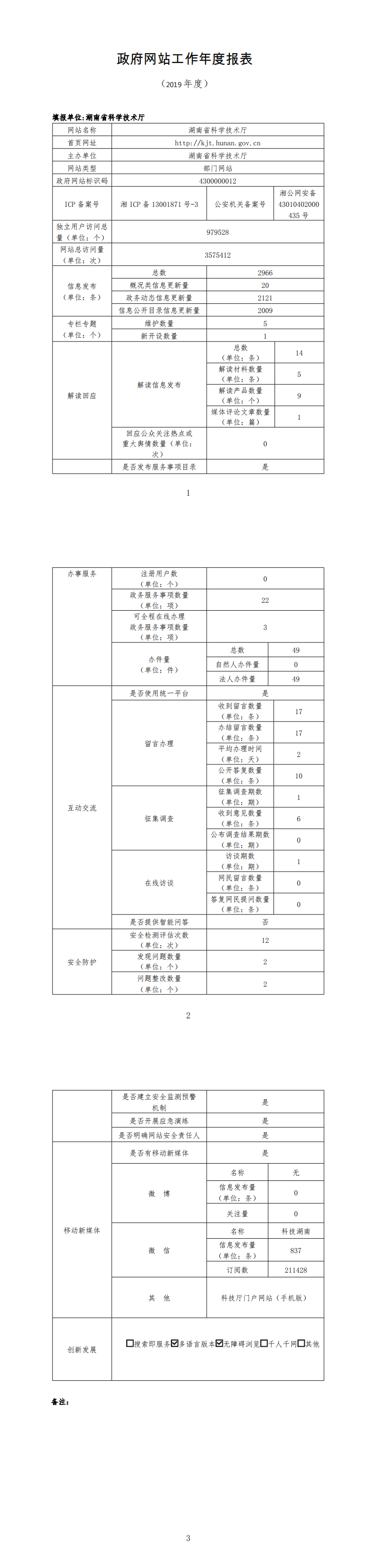 2019年湖南省科學(xué)技術(shù)廳網(wǎng)站工作年度報表