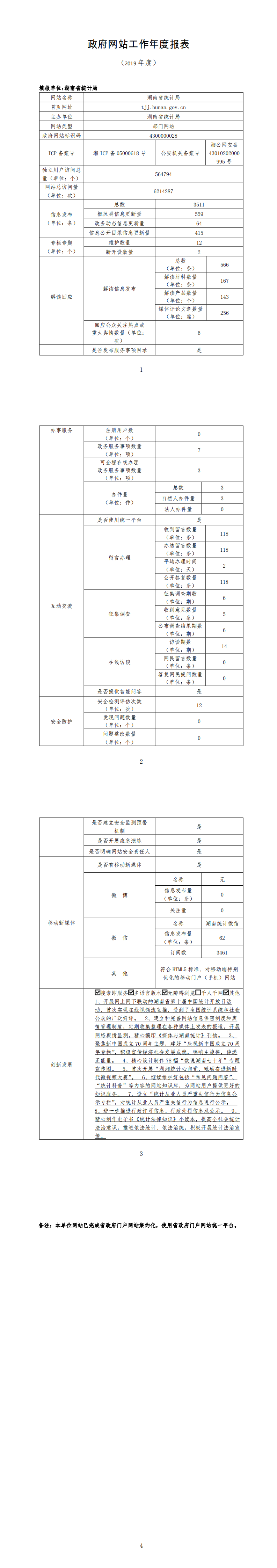 2019年湖南省統計局網(wǎng)站工作年度報表