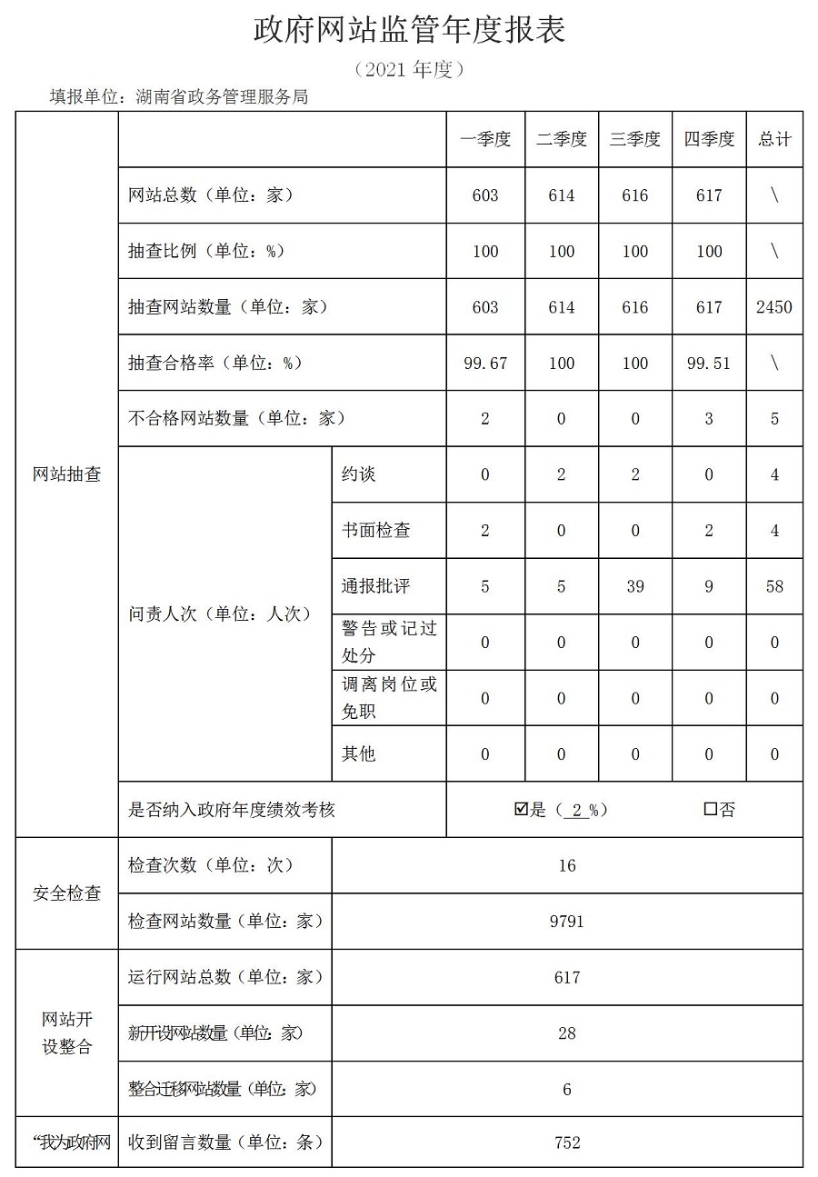 2021年湖南政府網(wǎng)站監管年度報表