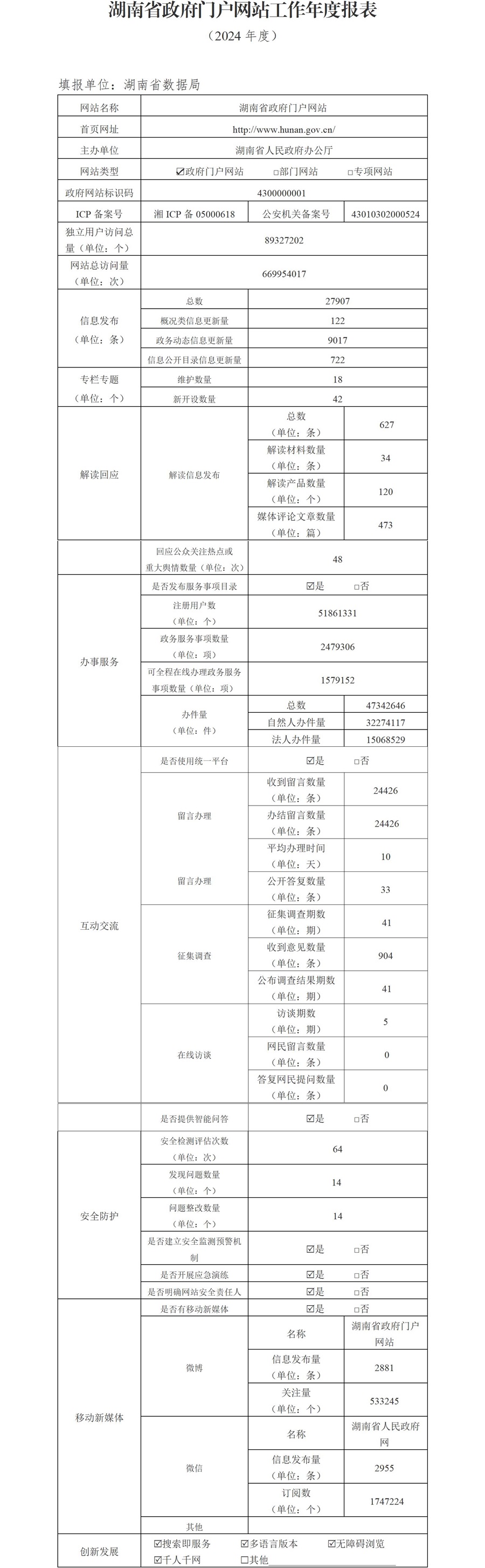2024年湖南省政府門(mén)戶(hù)網(wǎng)站工作年度報表