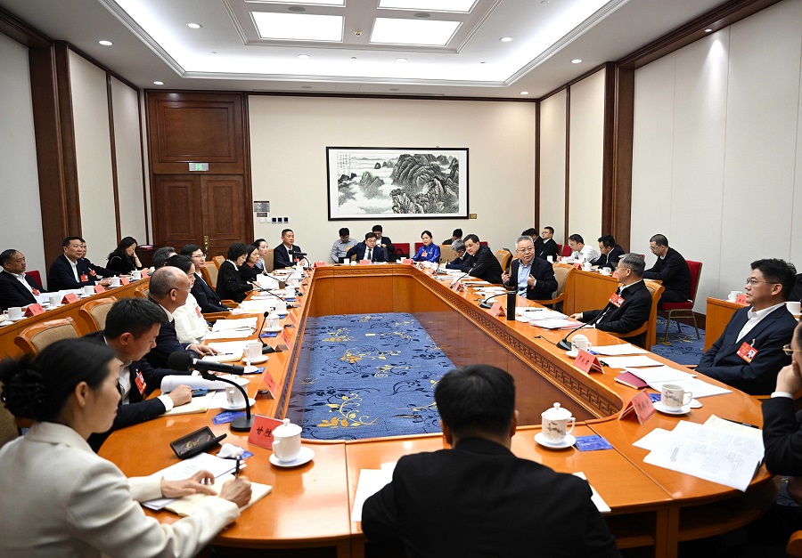 3月7日,湖南代表團在駐地舉行分組會(huì )議。