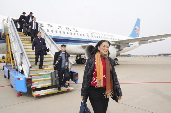 3日下午,隨著(zhù)南航CZ5263次航班在北京首都機場(chǎng)緩緩降落,出席全國政協(xié)十四屆三次會(huì )議的部分住湘全國政協(xié)委員抵達首都北京。湖南日報全媒體記者 辜鵬博 攝
