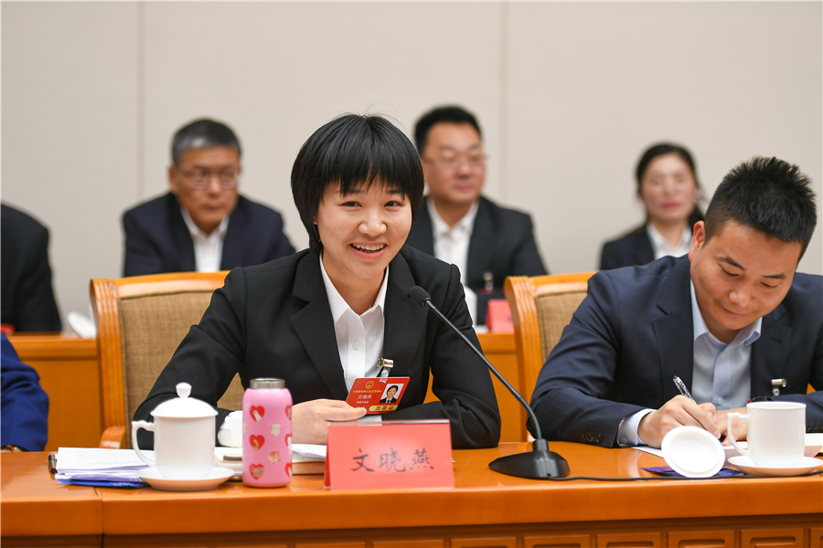 3月7日,文曉燕代表在湖南代表團分組會(huì )議上發(fā)言。 湖南日報全媒體記者 傅聰 攝