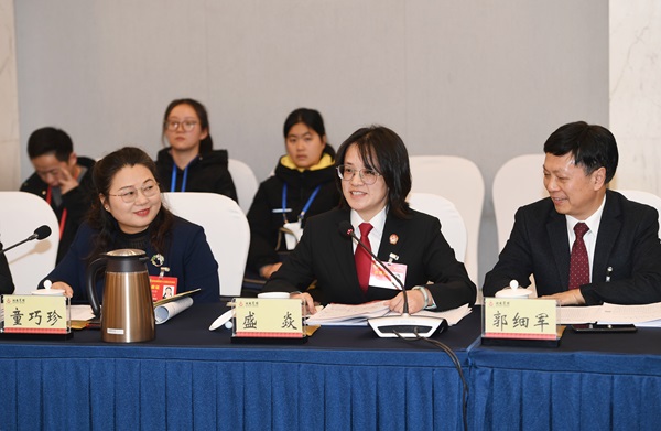 1月16日下午,盛焱委員(前排中)就溯源預防未成年人違法犯罪建言。湖南日報全媒體記者 田超 攝