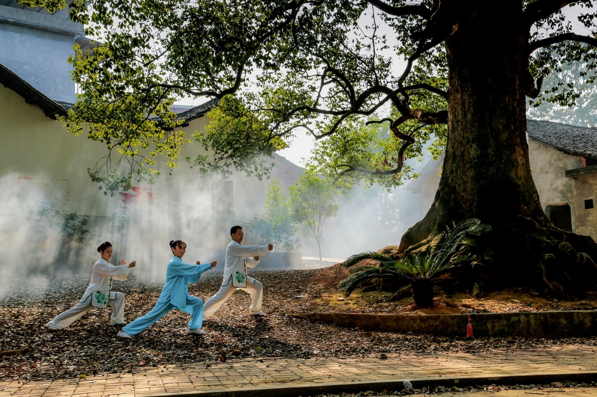古樟群里練晨功