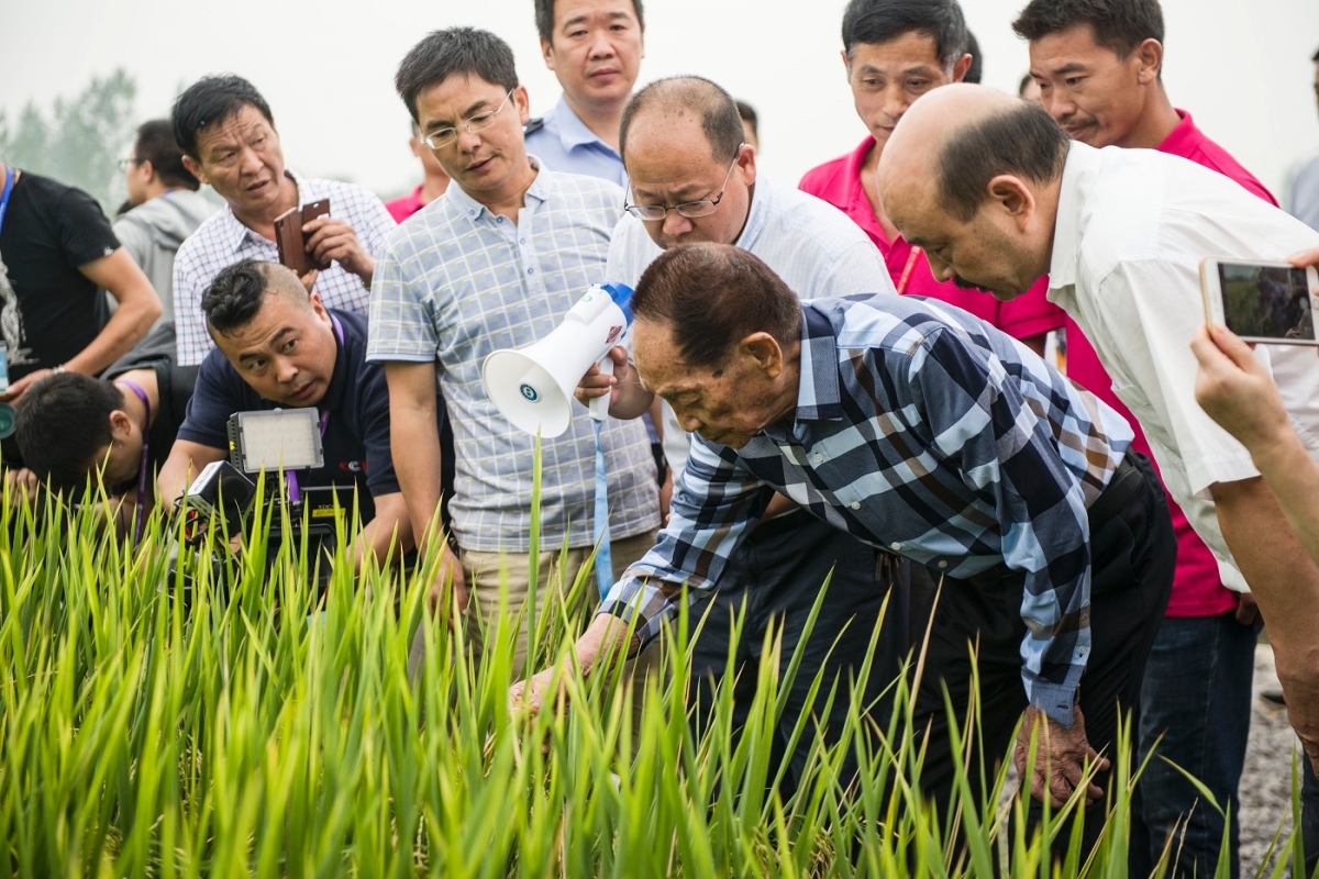 中國工程院院士、美國科學(xué)院外籍院士、國家雜交水稻工程技術(shù)研究工作中心主任、我國雜交水稻學(xué)科奠基人袁隆平在澧縣縣委書(shū)記鄒如龍等陪同下,視察了在澧縣城頭山鎮試種的千畝雜交稻。