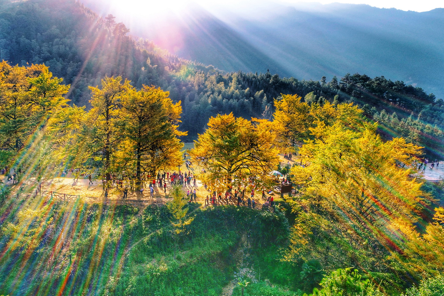 雙牌縣茶林鎮桐子坳村,陽(yáng)光穿透銀杏林。