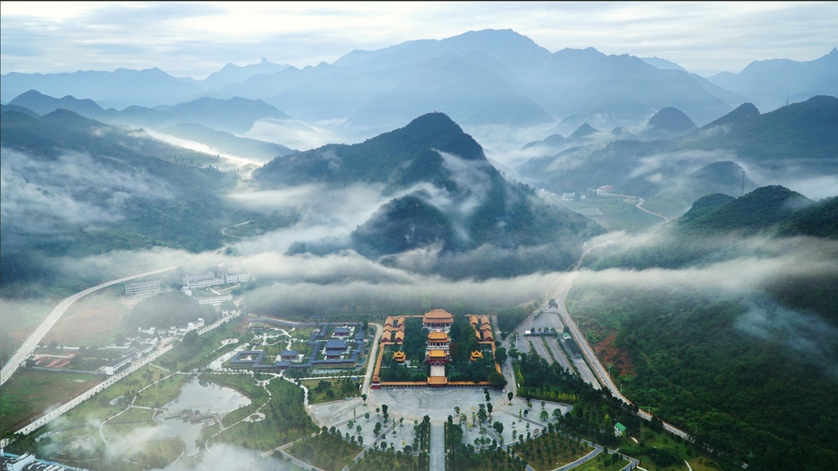 九嶷山巔的云雨是《舜陵瀟湘夜雨》中“永州陰嶺秀,舜廟九嶷蒼;浩蕩千山峻,妖嬈萬(wàn)水長(cháng)”的美妙詩(shī)句,舜帝陵上的煙云是《七律˙答友人》里“九嶷山上白云飛,帝子乘風(fēng)下翠微”的動(dòng)人詩(shī)篇。舜陵煙雨,是一場(chǎng)從天而降、綿延千年的甘霖,洗去九嶷圣山的百代鉛塵,托出舜德文明的萬(wàn)道霞光。圖為煙雨洗禮之下的九嶷山舜帝陵及碑林。