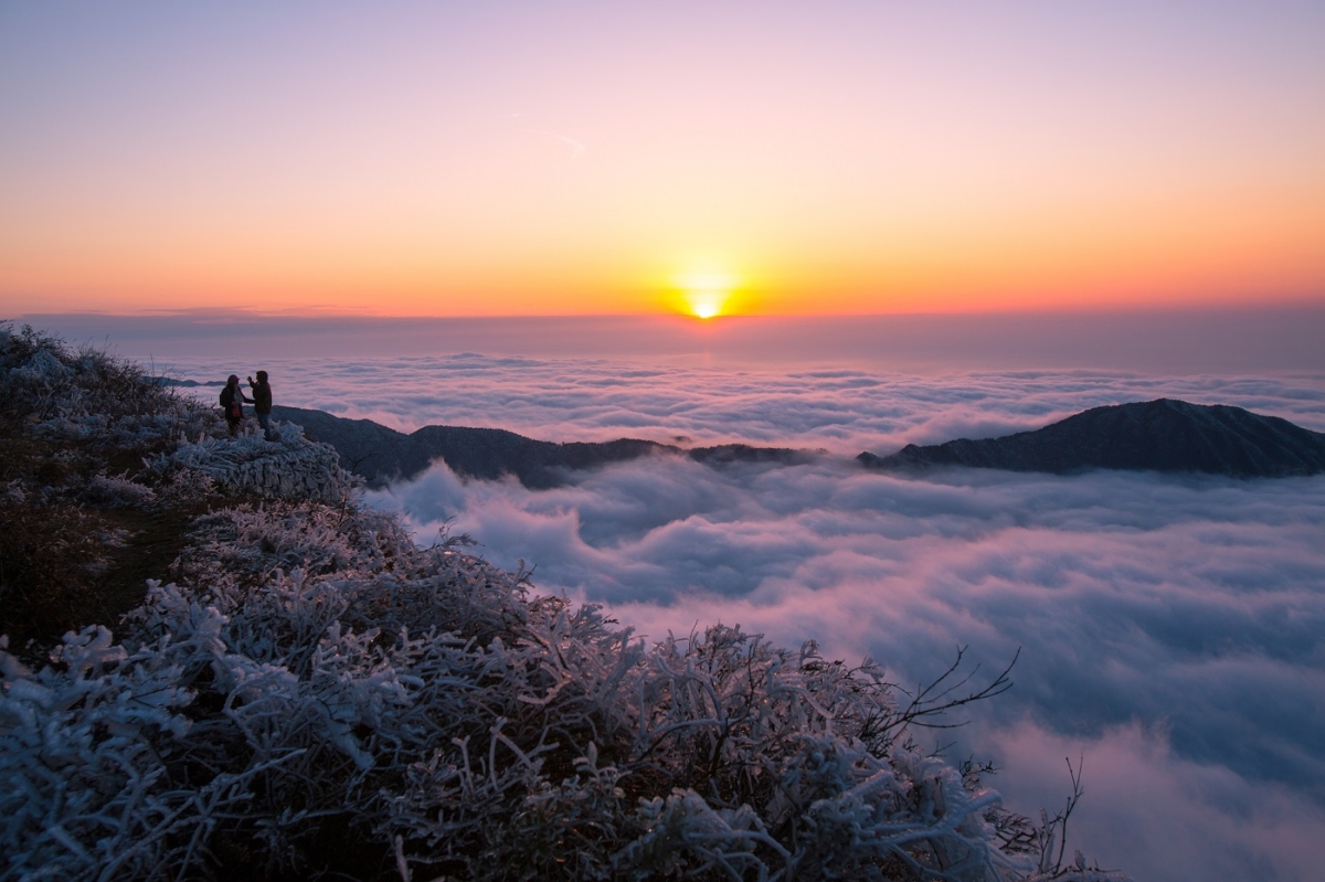 “冬賞雪”南岳冬季旅游的特色產(chǎn)品,南岳衡山作為中國南方最佳霧凇觀(guān)賞地,霧凇、云海、晚霞同時(shí)出,非常難得。