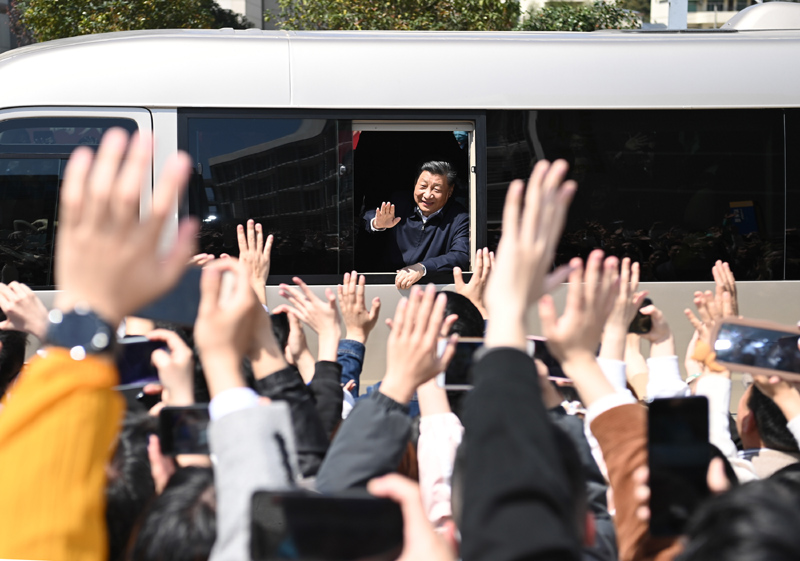 3月22日至25日,中共中央總書(shū)記、國家主席、中央軍委主席習近平在福建考察。這是25日上午,習近平在福州閩江學(xué)院考察時(shí),向師生們揮手致意。新華社記者 王曄 攝