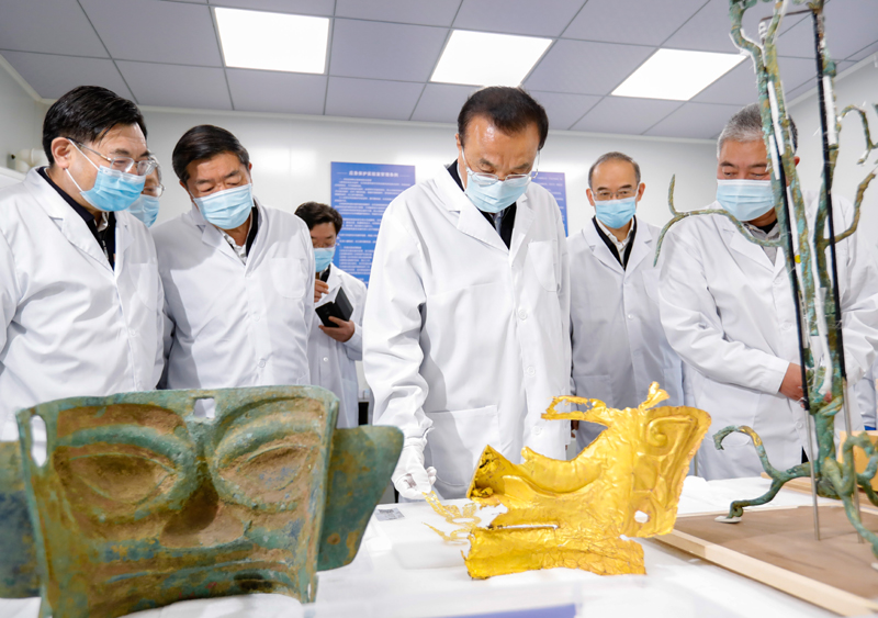 李克強來(lái)到三星堆遺址發(fā)掘現場(chǎng),了解考古進(jìn)展。對考古人員的專(zhuān)業(yè)精神表示贊許。他說(shuō),你們是在追溯中華文化的根脈??脊派婕岸鄠€(gè)領(lǐng)域,要運用好現代技術(shù),加強國際合作,期待有更多新發(fā)現,更好傳承中華優(yōu)秀文化。