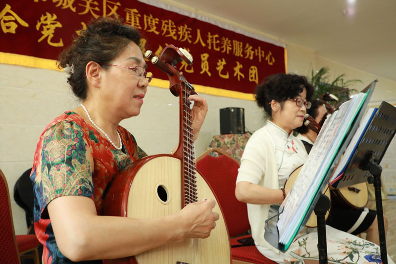 蘭州市民在虛擬養老院一處排練室演奏(7月31日攝)。新華社記者 梁軍 攝