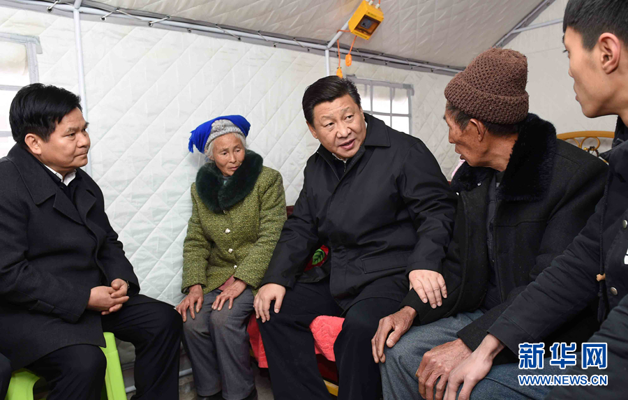 2012年12月30日,習近平在河北省阜平縣龍泉關(guān)鎮駱駝灣村看望慰問(wèn)困難群眾。 新華社記者 蘭紅光 攝