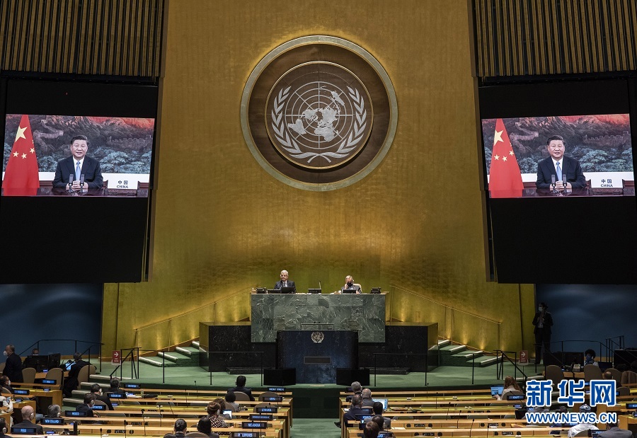 2020年9月22日,習近平在第七十五屆聯(lián)合國大會(huì )一般性辯論上發(fā)表重要講話(huà),提出我們有信心如期實(shí)現現行標準下農村貧困人口全部脫貧,提前10年實(shí)現《聯(lián)合國2030年可持續發(fā)展議程》減貧目標。新華社發(fā)(聯(lián)合國供圖/埃瑟金德?tīng)枴さ仑愗?攝)