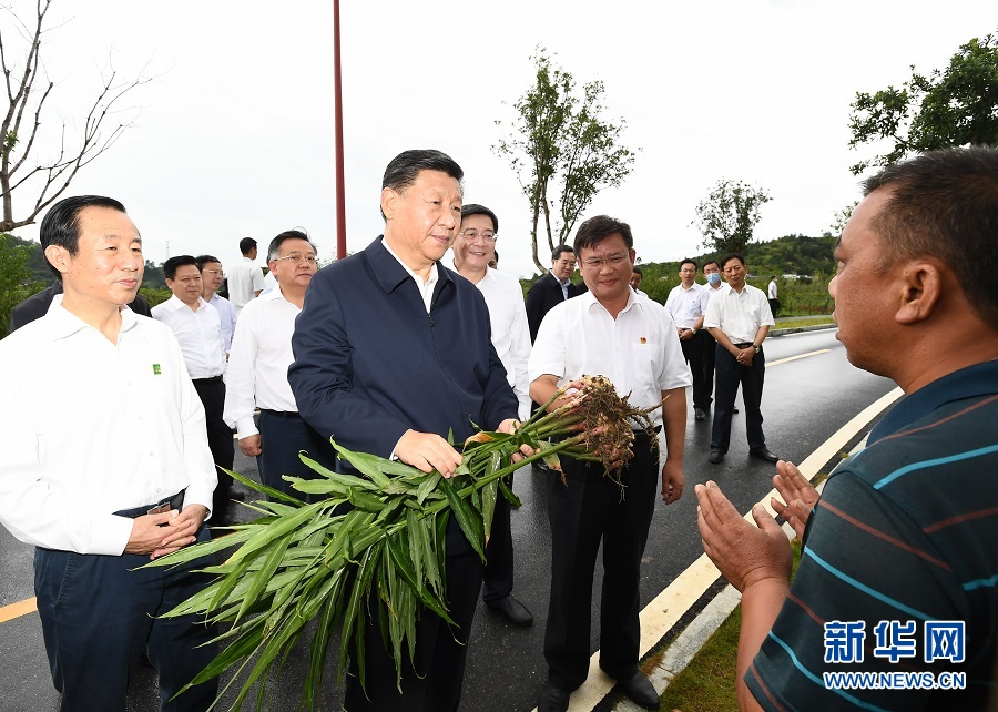 2020年9月16日至18日,習近平在湖南考察。這是16日下午,習近平在郴州市汝城縣文明瑤族鄉沙洲瑤族村沙洲現代農旅示范基地,了解扶貧產(chǎn)業(yè)發(fā)展和增收情況。新華社記者 謝環(huán)馳 攝