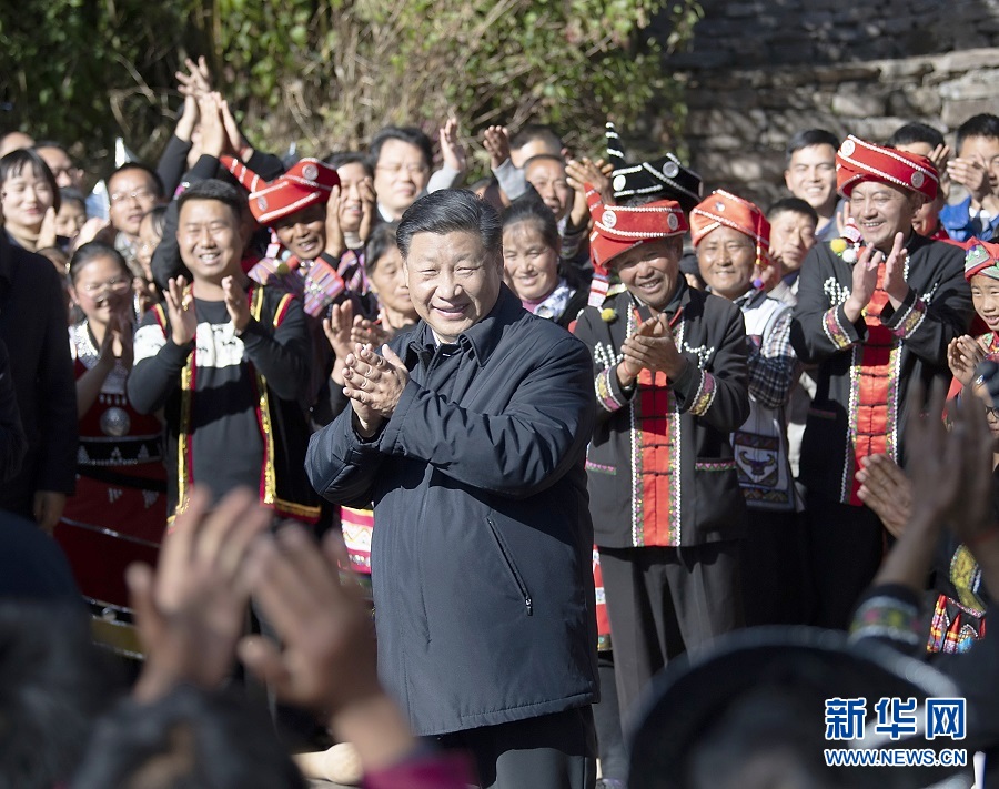 2020年1月19日,習近平在云南省騰沖市清水鄉三家村中寨司莫拉佤族村看望鄉親們,并向大家送上新春祝福。新華社記者 燕雁 攝
