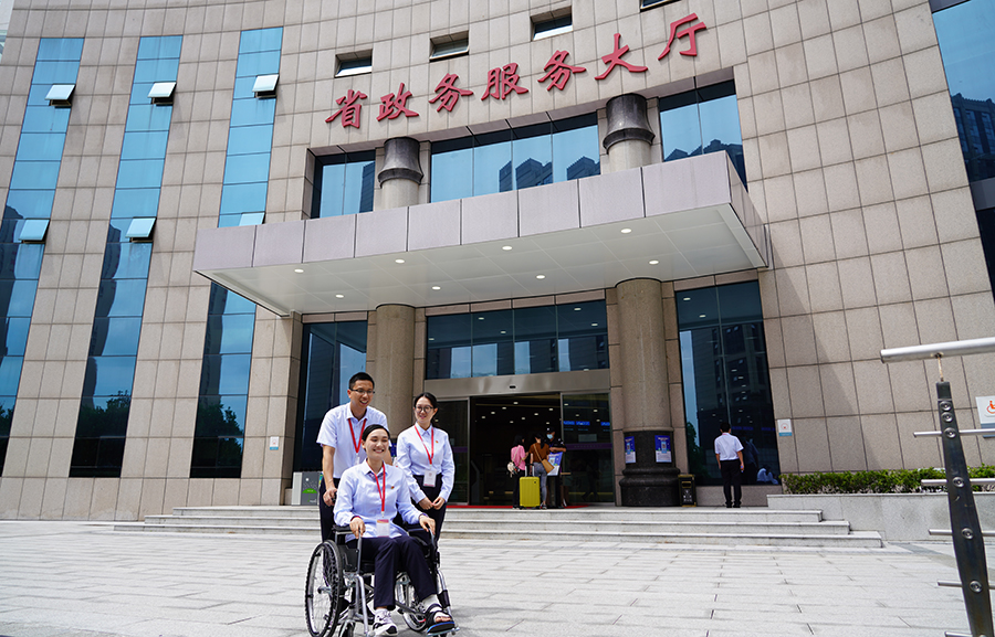 這位名叫陳洛玉的辦事員,來(lái)自省政務(wù)服務(wù)大廳教育窗口,5月窗口正式營(yíng)業(yè)前夕,她意外腳骨折,卻拒絕休假調養,堅持坐輪椅上崗。