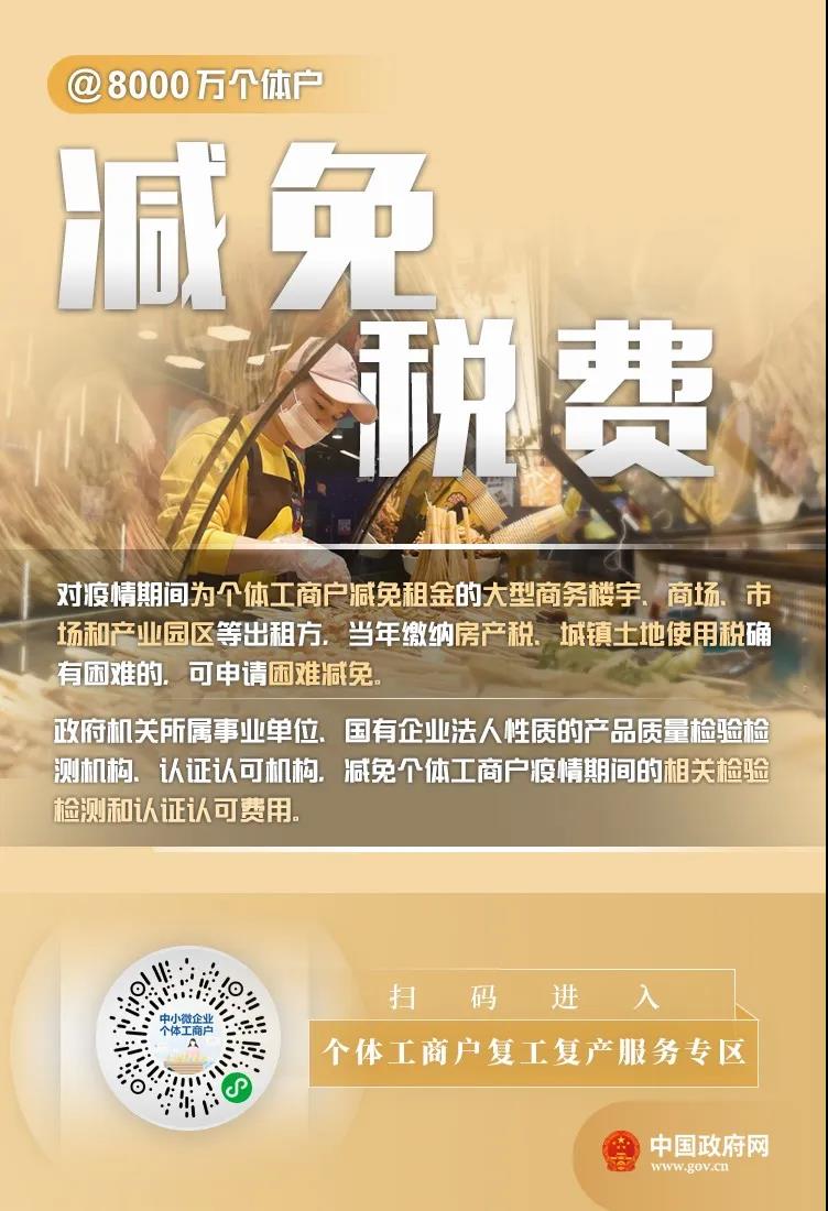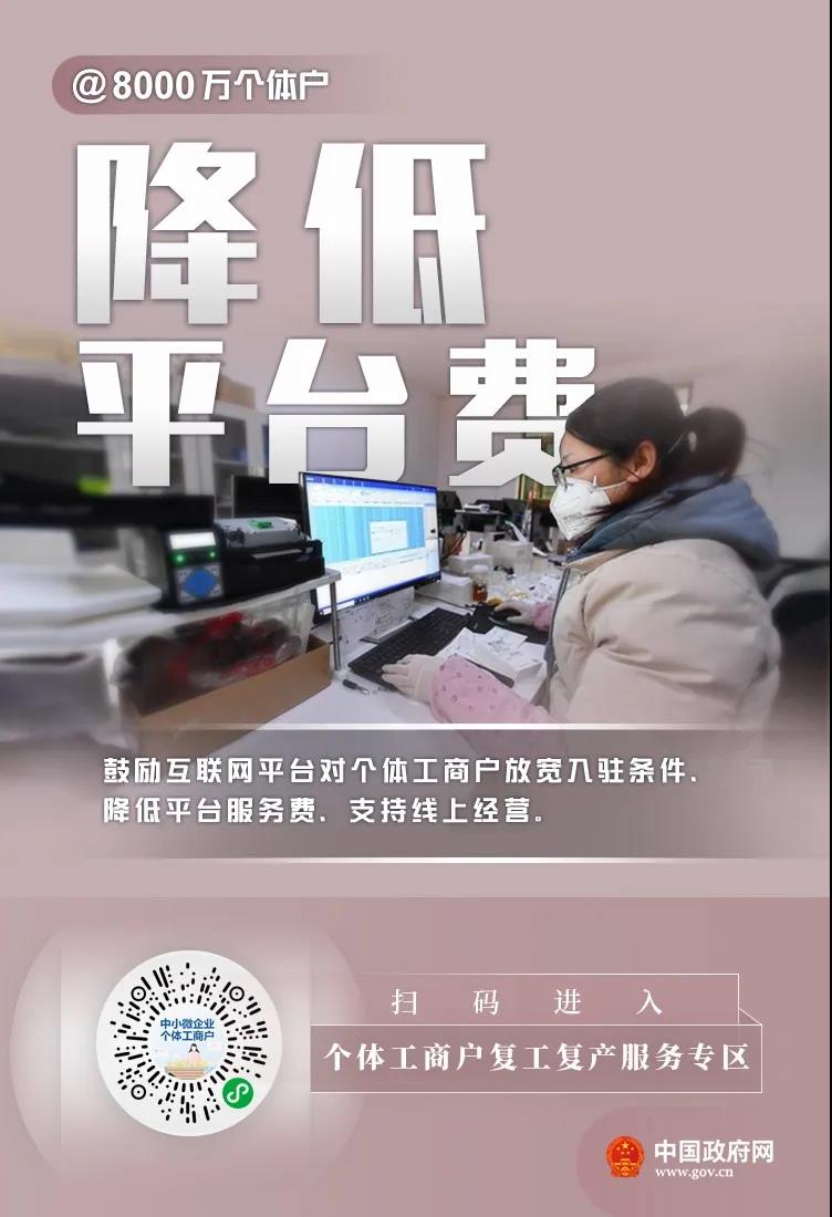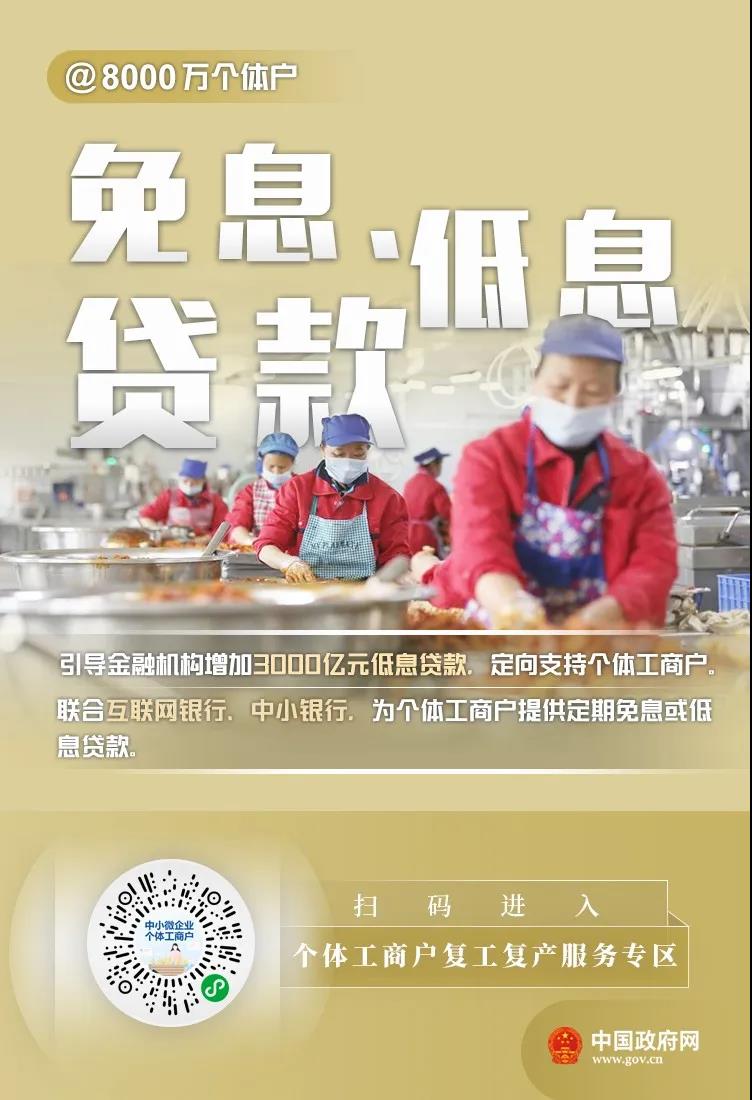 李克強總理2月25日主持召開(kāi)國務(wù)院常務(wù)會(huì )議,部署對吸納2億多人就業(yè)的8000多萬(wàn)個(gè)體工商戶(hù)加大扶持。市場(chǎng)監管總局等六部門(mén)近日印發(fā)《關(guān)于應對疫情影響 加大對個(gè)體工商戶(hù)扶持力度的指導意見(jiàn)》,幫助個(gè)體工商戶(hù)應對疫情影響,盡快有序復工復產(chǎn)。對此,國務(wù)院客戶(hù)端小程序上線(xiàn)中小微企業(yè)、個(gè)體工商戶(hù)復工復產(chǎn)服務(wù)專(zhuān)區,扶持政策,一鍵掌握??靵?lái)看看有哪些支持吧——