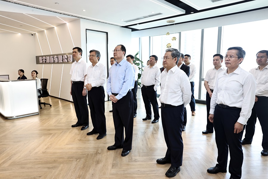揭牌儀式前,毛偉明一行考察了數字湖南公司建設情況。相關(guān)負責人介紹,數字湖南公司以數字政府建設運維和數據要素運營(yíng)為核心主業(yè),聚焦數據“聚、通、用”全生命周期,引領(lǐng)構建全產(chǎn)業(yè)鏈、全價(jià)值鏈、全服務(wù)鏈的大數據產(chǎn)業(yè)生態(tài)圈,努力打造數字湖南建設的主力軍、數據要素市場(chǎng)的先鋒隊、數據資產(chǎn)運營(yíng)的排頭兵、數據安全治理的守門(mén)員。毛偉明指出,與中國電子攜手組建數字湖南公司,是湖南貫徹習近平總書(shū)記關(guān)于數字中國建設重要論述的實(shí)際行動(dòng),也是全力打造高質(zhì)量發(fā)展新引擎的生動(dòng)實(shí)踐。我們要以此次數字湖南公司成立及合作協(xié)議簽署為契機,持續深化央地交流合作,全力推進(jìn)政府數字化轉型,以“湘易辦”超級服務(wù)端為總平臺,加快數據融通、智慧應用,積極拓展深化跨省政務(wù)APP聯(lián)盟合作,持續推動(dòng)政務(wù)服務(wù)“易辦、好辦、快辦”,讓“數據多跑路、群眾少跑腿”,不斷擦亮“一件事一次辦”服務(wù)品牌,實(shí)現高質(zhì)量發(fā)展、高品質(zhì)生活、高效能治理。著(zhù)力推進(jìn)算力支撐能力提升,堅持數字技術(shù)和應用場(chǎng)景兩端發(fā)力,優(yōu)化算力設施、數據中心布局,推動(dòng)算力、算法、算據、算網(wǎng)“四算一體”發(fā)展,以超級算力賦能千行百業(yè)新應用場(chǎng)景。大力激發(fā)數字經(jīng)濟動(dòng)力活力,進(jìn)一步整合數字要素、挖掘數據資源、拓展數字經(jīng)濟,促進(jìn)數字技術(shù)與實(shí)體經(jīng)濟深度融合,加快打造全鏈條產(chǎn)業(yè)生態(tài)體系,積極搶占未來(lái)發(fā)展制高點(diǎn),為全省經(jīng)濟發(fā)展轉型升級、提質(zhì)增效提供新的動(dòng)力。