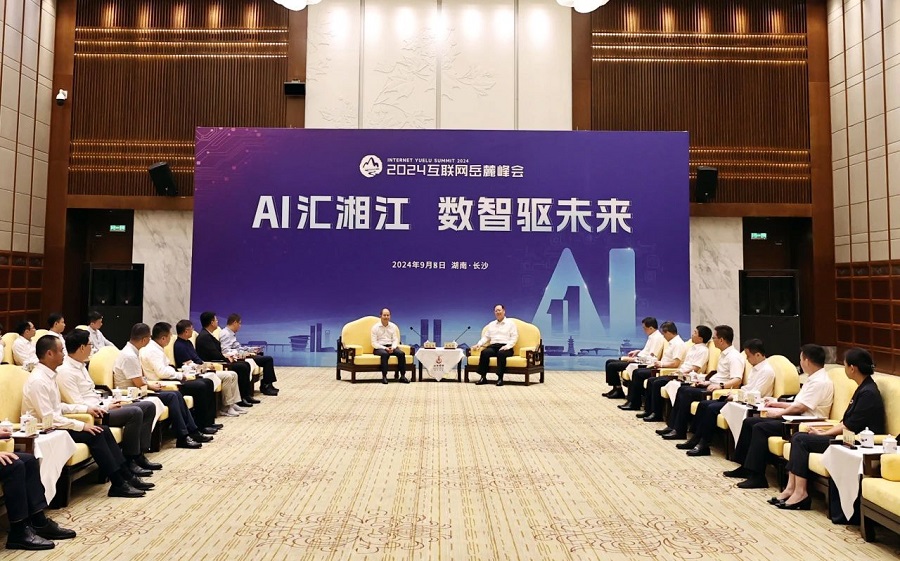 8日下午,省委副書(shū)記、省長(cháng)毛偉明與華為輪值董事長(cháng)徐直軍等來(lái)湘出席2024互聯(lián)網(wǎng)岳麓峰會(huì )的嘉賓代表座談。