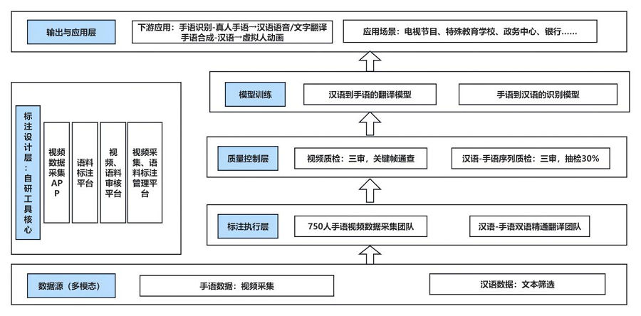三是建立專(zhuān)業(yè)手語(yǔ)標注人才庫。在高質(zhì)量聽(tīng)人手語(yǔ)翻譯稀缺,高文化水平、較高漢語(yǔ)理解能力聾人稀少的背景下,技術(shù)團隊集聚了全國各特校、高校、社會(huì )聾人、手語(yǔ)愛(ài)好者等熟悉漢語(yǔ)、手語(yǔ)的采集員超750人。該標注團隊是中國手語(yǔ)語(yǔ)言學(xué)研究的重要力量,也是支持中國手語(yǔ)翻譯技術(shù)出海,進(jìn)行國際化布局的后備力量。