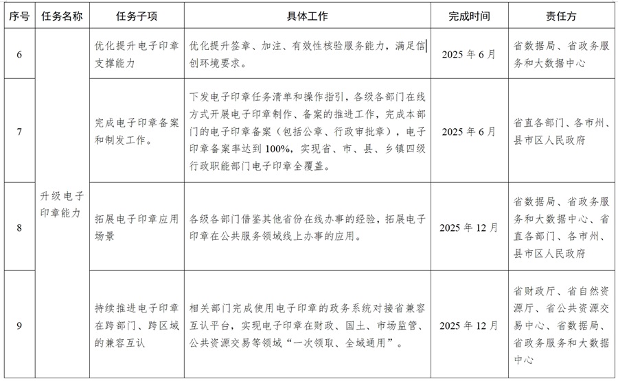 2.升級電子印章應用能力。升級電子印章在線(xiàn)審批、統一授權、統一核驗、電子證照加注、兼容互認等功能及信創(chuàng )環(huán)境電子印章應用能力,滿(mǎn)足電子證照和各類(lèi)政務(wù)服務(wù)場(chǎng)景下的電子印章應用。各級各部門(mén)應完成本部門(mén)的電子印章備案申請(包括公章、行政審批章),電子印章備案率達到100%。探索在財政、自然資源和公共資源交易等領(lǐng)域推進(jìn)電子印章的互信互認。
