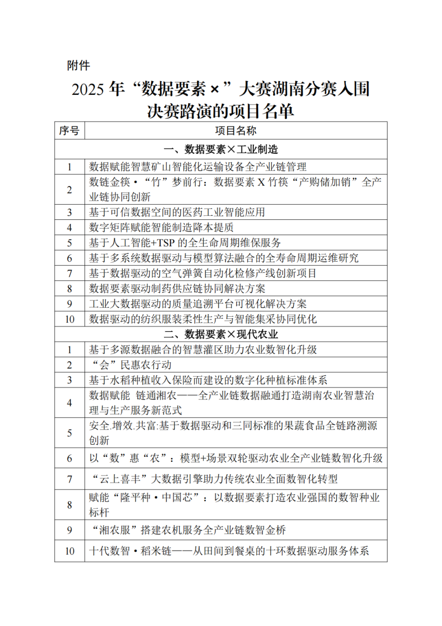 附件:2025年“數據要素×”大賽湖南分賽入圍決賽路演的項目名單