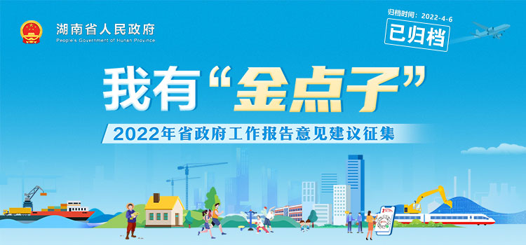 2021年12月1日至2022年湖南省“兩會(huì )”前,省政府門(mén)戶(hù)網(wǎng)站聯(lián)合多家媒體及各市州與廳局政府網(wǎng)站、政務(wù)新媒體,舉辦省政府工作報告“金點(diǎn)子”征集活動(dòng)。