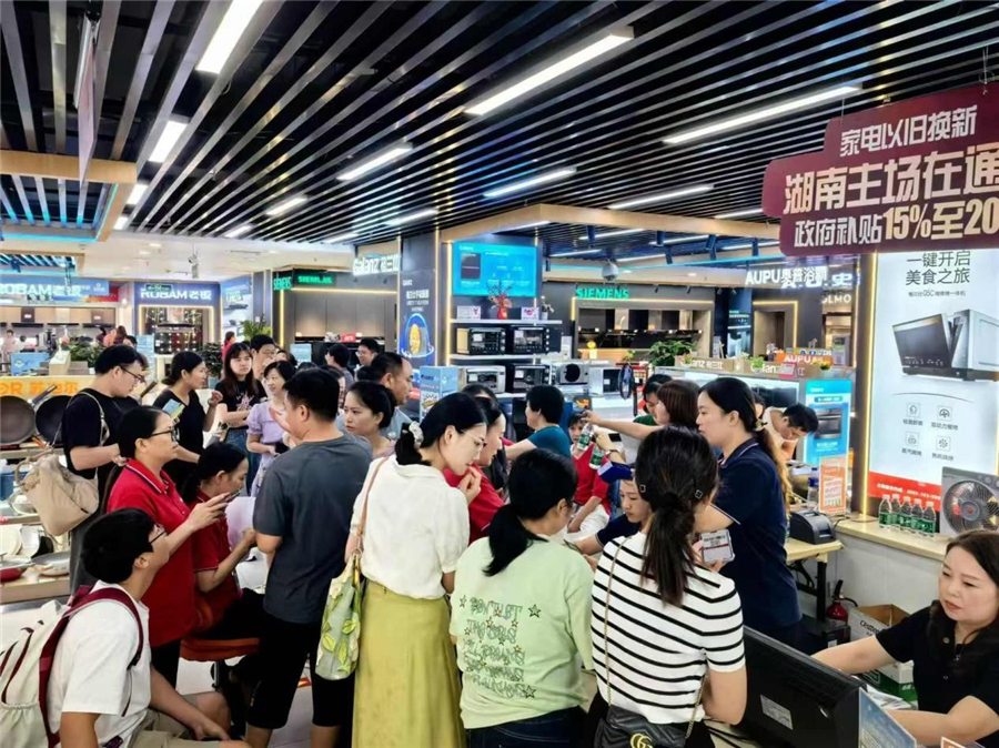 “現在買(mǎi)家電太劃算了,相當于打8折,趕緊沖”“最近店里都是爆滿(mǎn)特別是周末,買(mǎi)單都排長(cháng)隊,這種場(chǎng)景好幾年都沒(méi)有過(guò)了”……自家電以舊換新政策實(shí)施以來(lái),湖南家電消費市場(chǎng)十分火爆。10月16日,記者獲悉,9月份,全省家電以舊換新超43萬(wàn)臺套,帶動(dòng)消費18.73億元。