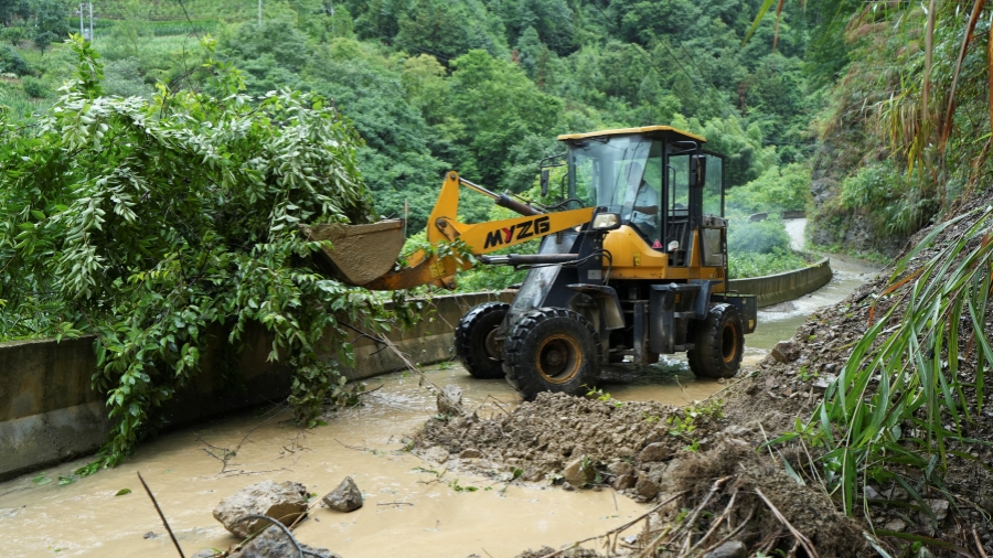 6月19日,施工人員在慈利縣江埡鎮大壩村通往龍潭灣村的主干道上清理堵塞物,疏通道路。18日7時(shí)至19日7時(shí),慈利縣26個(gè)鄉鎮普降大雨,全縣黨員、干部、群眾攜手并肩,連夜轉移居民,及時(shí)疏通積水路段。