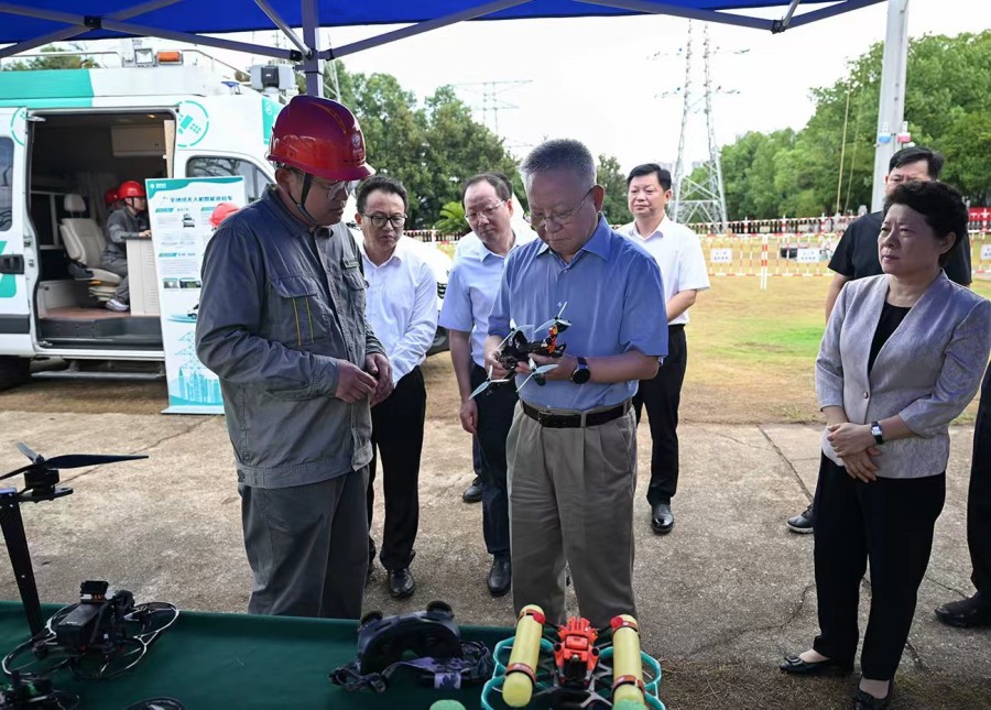 9月2日,沈曉明來(lái)到國網(wǎng)湖南電力公司帶電作業(yè)與智能巡檢技術(shù)裝備基地調研。