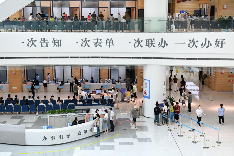 常德市市民中心,市民來(lái)到“一件事一次辦”各窗口辦理相關(guān)業(yè)務(wù)。
