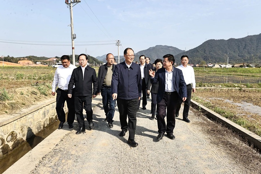 毛偉明在瀏陽(yáng)市省級糧食生產(chǎn)萬(wàn)畝綜合示范片檢查春耕生產(chǎn)。