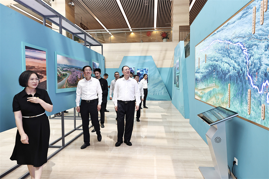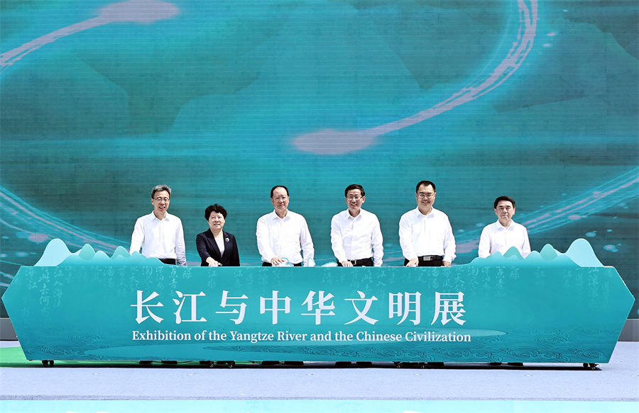 開(kāi)幕式后,毛偉明、饒權共同為“不盡長(cháng)江滾滾來(lái)——長(cháng)江與中華文明展”主題展覽揭幕,并參觀(guān)了長(cháng)沙博物館。