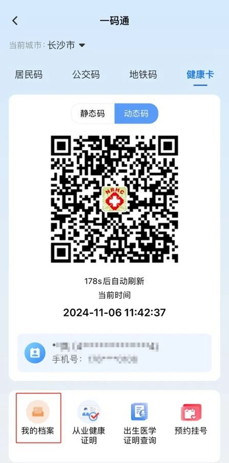 通過(guò)“湘易辦”首頁(yè)“一碼通”入口進(jìn)入“健康卡”頁(yè)面,選擇“我的檔案”。即可在線(xiàn)調閱過(guò)往的診療數據,診療、公衛、體檢、接種等信息記錄通通都有,既往史、過(guò)敏史、家族史一應俱全。