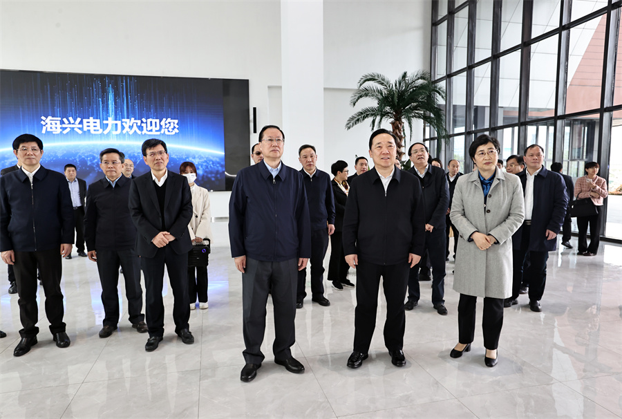 3月27日,毛偉明、王浩一行在海興電力考察。