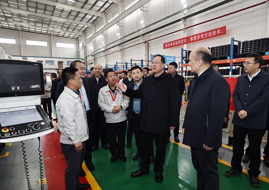 和全省一樣,衡陽(yáng)已有超九成的企業(yè)復工復產(chǎn),正開(kāi)足馬力奮戰一季度“開(kāi)門(mén)紅”。毛偉明一行先后來(lái)到比亞迪衡陽(yáng)智能制造產(chǎn)業(yè)園、衡陽(yáng)建滔、衡陽(yáng)瑞啟、恒飛電纜、特變電工云集5G科技產(chǎn)業(yè)園等,向企業(yè)負責同志了解生產(chǎn)銷(xiāo)售運營(yíng)、用工用能成本等情況,協(xié)調解決企業(yè)發(fā)展瓶頸難題。毛偉明指出,要充分發(fā)揮龍頭企業(yè)、鏈主企業(yè)的引領(lǐng)帶動(dòng)作用,不斷提高高端化、智能化、綠色化水平,加速先進(jìn)制造業(yè)、現代服務(wù)業(yè)“兩業(yè)共融”,以新技術(shù)新產(chǎn)品搶占發(fā)展新賽道、競爭制高點(diǎn),實(shí)現經(jīng)濟效益、社會(huì )效益、生態(tài)效益多贏(yíng)。