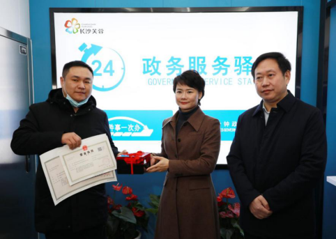 長(cháng)沙市芙蓉區在中國農業(yè)銀行政務(wù)服務(wù)驛站發(fā)放第一張營(yíng)業(yè)執照。