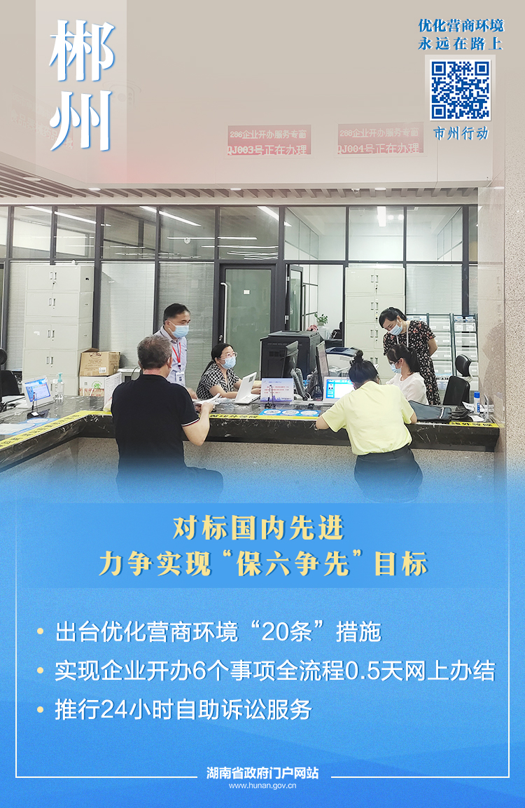 郴州市創(chuàng )新啟動(dòng)企業(yè)全生命周期“一件事一次辦”改革試點(diǎn),開(kāi)辦企業(yè)實(shí)現0.5個(gè)工作日辦結。
