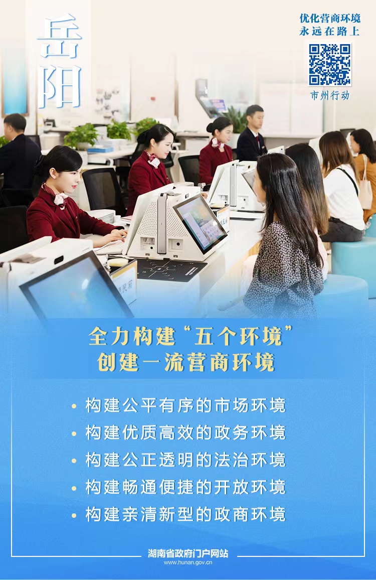 近年來(lái),岳陽(yáng)積極推動(dòng)市場(chǎng)環(huán)境、政務(wù)環(huán)境、法治環(huán)境、發(fā)展環(huán)境、政商環(huán)境五大領(lǐng)域改革,以務(wù)實(shí)舉措推動(dòng)營(yíng)商環(huán)境不斷向好。