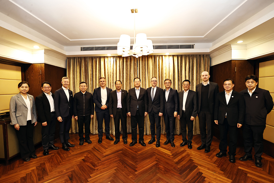 在與中德友好協(xié)會(huì )會(huì )長(cháng)、中國前駐德國大使史明德和西門(mén)子、舍弗勒、巴斯夫、博世等德國企業(yè)代表以及德國工商大會(huì )上海代表處負責人座談時(shí),毛偉明指出,德國是湖南在歐洲最大的投資與技術(shù)合作伙伴。近年來(lái),在中德友好協(xié)會(huì )的積極牽線(xiàn)搭橋下,湖南與德國互訪(fǎng)交流日益頻繁、經(jīng)貿合作成效顯著(zhù)、人文交流豐富多彩。目前,德國在湘企業(yè)33家、其中世界500強7家,中聯(lián)重科、三一重工等37家湘企走進(jìn)德國 ;2024年,湖南與德國貿易總額達150億元。希望中德友好協(xié)會(huì )發(fā)揮人脈資源多、信息渠道廣等優(yōu)勢,助力湖南與德國深化產(chǎn)業(yè)對接、科創(chuàng )合作、人文交往;期待廣大德國企業(yè)與湖南在產(chǎn)業(yè)鏈優(yōu)勢互補、數字化綠色化轉型等方面開(kāi)展更多高質(zhì)量高水平的務(wù)實(shí)合作。史明德及商會(huì )企業(yè)家代表一致認為,湖南與德國合作基礎條件好、產(chǎn)業(yè)互補性強,德國企業(yè)對湖南市場(chǎng)充滿(mǎn)信心。各方將在促進(jìn)務(wù)實(shí)合作、深化民間友誼等方面發(fā)揮積極作用,為促進(jìn)湖南與德國友好事業(yè)貢獻力量。