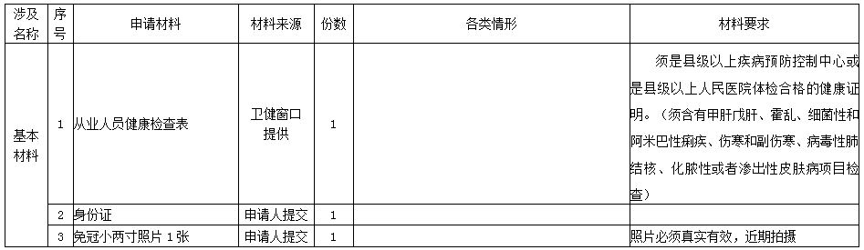 2、從業(yè)人員本人須到縣疾病預防控制中心或者縣人民醫院參加體檢,體檢合格者,領(lǐng)取健康證明